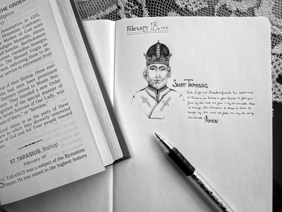 My mom got me a Lives of the Saints book for Christmas and I thought it would be nice to do Lenten sketching meditations from the book. Yesterday’s saint was Terasius. He was the Patriarch of Contstantiople after being secretary to Constantine. He worked diligently to reform the clergy and the people throughout his life and tried to make sure that not one person was overlooked in the distribution of alms.